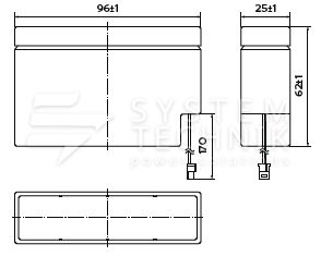 - Срок хранения без подзаряда: 6 мес. при 25°C;