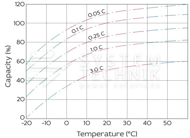 - Срок хранения без подзаряда: 6 месяцев при 25ºС;