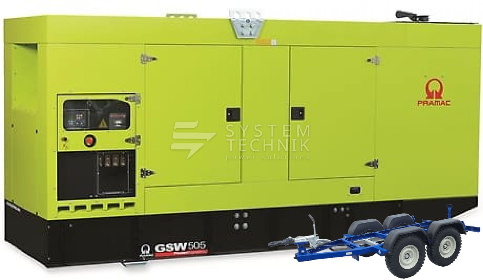 - Дизельный генератор Pramac GSW 505 V 400V В кожухе на прицепе