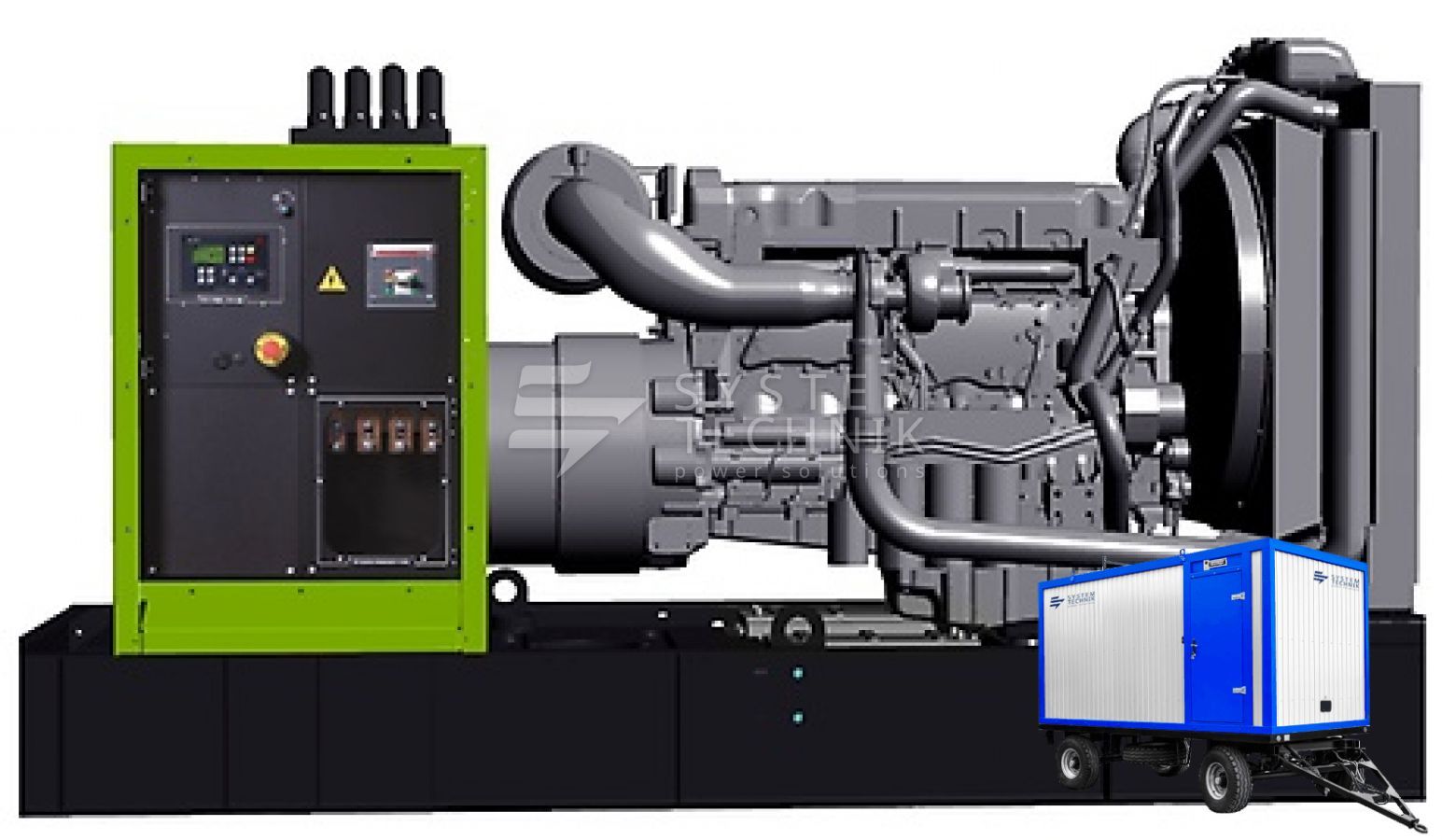 ![]() в контейнере на прицепе с автозапуском |