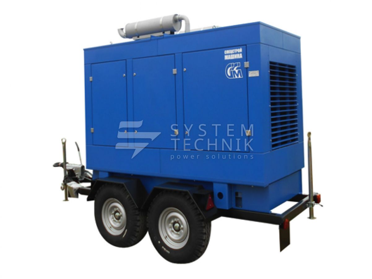 - ССМ ЭД-150-Т400-1РКМ2 (Marelli) в шумозащитном кожухе на шасси на прицепе